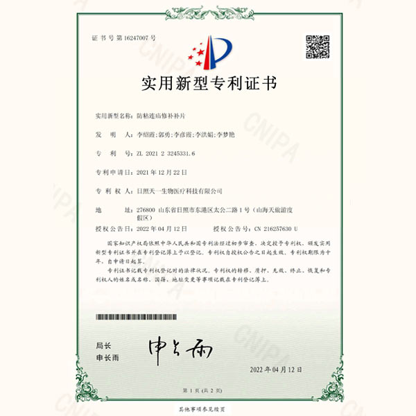 2011年,天一生物與山東省藥學(xué)科學(xué)院建立產(chǎn)學(xué)研合作,聯(lián)合研發(fā)疝修補(bǔ)類器械。該產(chǎn)品研發(fā)后曾在首都醫(yī)科大學(xué)附屬北京朝陽醫(yī)院、首都醫(yī)科大學(xué)附屬北京同仁醫(yī)院進(jìn)行臨床試驗(yàn),試驗(yàn)結(jié)果表明,本公司產(chǎn)品組合形狀更符合臨床使用要求,方便臨床醫(yī)生術(shù)中操作,目前共擁有四大系列產(chǎn)品,臨床使用效果得到了行業(yè)眾多專家的一致好評(píng)。